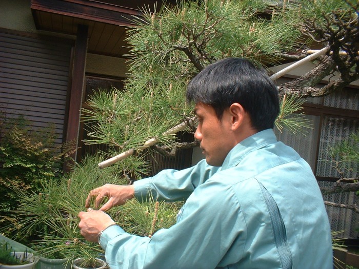 みどりを摘むことにより成長を抑制し枝ぶりを作っていきます。