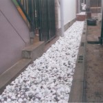 マンション横の路地部分の玉砂利の敷設工事です。